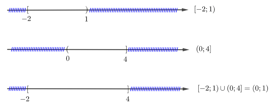 \([-2;1) \cap (0;4] =[-2;4]\).
