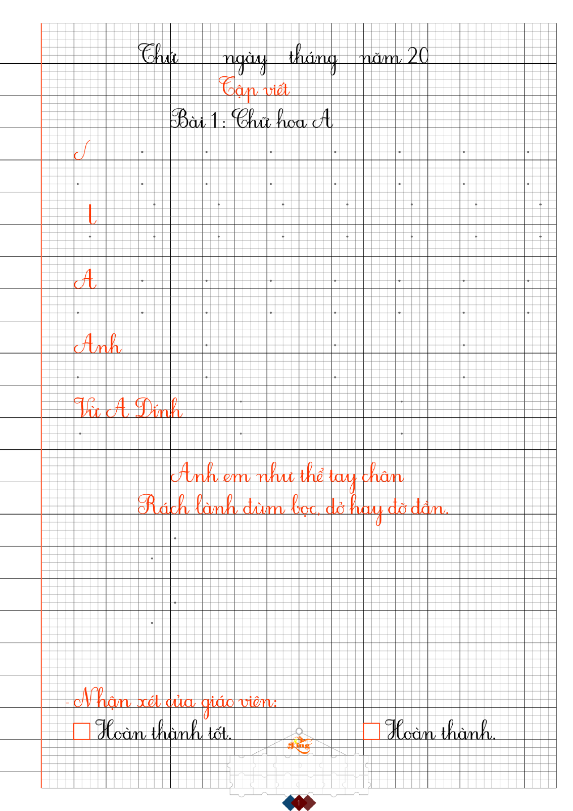Mẫu giấy luyện viết chữ hoa cỡ nhỏ