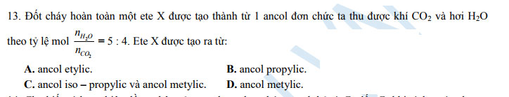 A là một ancol đơn chức không no, có chứa một liên kết đôi trong phân tử, mạch hở. Khi đốt cháy một thể tích hơi A thì thu được 4 thể tích khí CO2 (các thể tích đo trong cùng điều kiện về nhiệt độ và áp suất). A có thể ứng với bao nhiêu chất (bao nhiêu công thức cấu tạo) để phù hợp với giả thiết trên? (Cho biết nhóm –OH gắn vào C mang nối đôi không bền)6