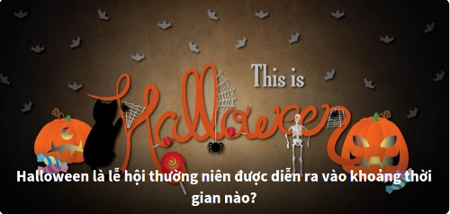 Halloween thường được tổ chức 1 ngày trước ngày 1.11, tức là tối ngày 31.10. Nó là dịp để mọi người thờ cúng những lĩnh hồn đã mất, và cũng là dịp mọi người vui vẻ để quên đi những gì đã khuất. Vì vậy mọi người thường ăn mặc & trang điểm kì dị trong dịp này.