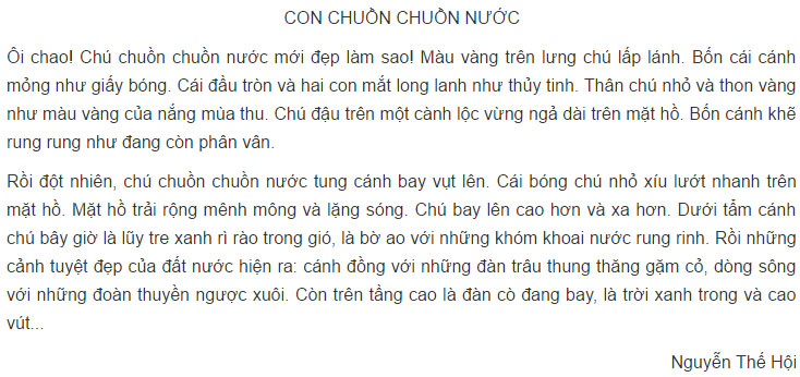 Đọc thầm bài tập đọc "Con chuồn chuồn nước" và chọn vào chữ đặt trước câu trả lời đúng nhất.