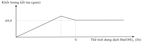 Câu 26: Nhỏ từ từ dung dịch Ba(OH)2 0,2M vào ống nghiệm chứa dung dịch Al2(SO4)3. Đồ thị biểu diễn sự phụ thuộc khối lượng kết tủa theo thể tích dung dịch Ba(OH)2 như sau: