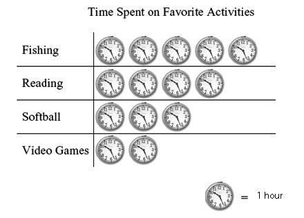 The chart above shows the time that Dave spends on his favorite activities in one week. Using the chart, how long did Dave spend on softball?