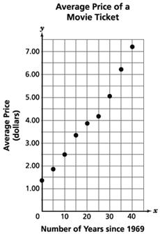 The average price of a movie ticket, over a period of several years, is shown in the graph above. The trend shown in the graph continues. What is the best prediction of the average price of a movie ticket in the year 2024?