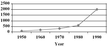 Wally is writing a research report on his favorite reptile – the alligator. He discovered that the alligator population in Florida grew quickly. How many more alligators were in Florida in 1990 than in 1950?