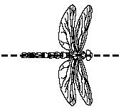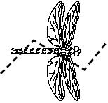 Which dragonfly has a line of symmetry drawn through it?