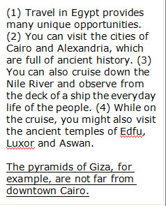 During a revision of her writing, Margaret wants to add another sentence to her paragraph about traveling in Egypt. Where should Margaret insert the additional underlined sentence into the paragraph?
