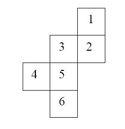 When this net of six squares is cut out and folded to form a cube, what is the product of the numbers on the four faces adjacent to the one labeled with a 1?