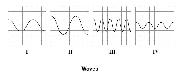 An oscilloscope is an instrument that can be used to display the properties of waves. Melanie studies four pictures of waves from an oscilloscope.