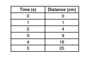 The table above shows the distance a cart travels over time.