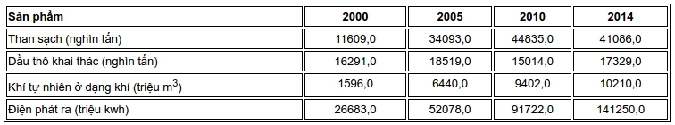 MỘT SỐ SẢN PHẨM CỦA NGÀNH CÔNG NGHIỆP NĂNG LƯỢNG Ở NƯỚC TA TRONG GIAI ĐOẠN 2000 - 2014