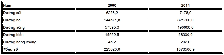 (Nguồn: Niên giám thống kê Việt Nam 2015 - Nhà xuất bản thống kê, 2016)