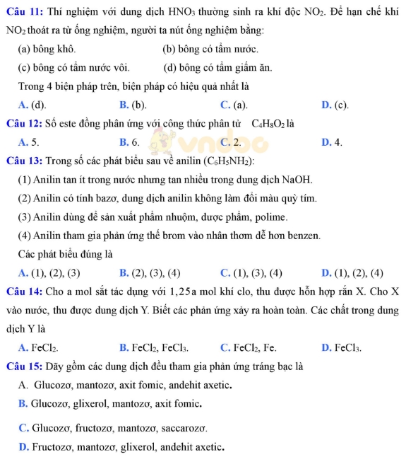 Câu 11 - 15: