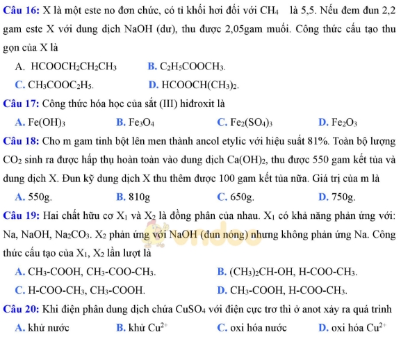 Câu 16 - 20: