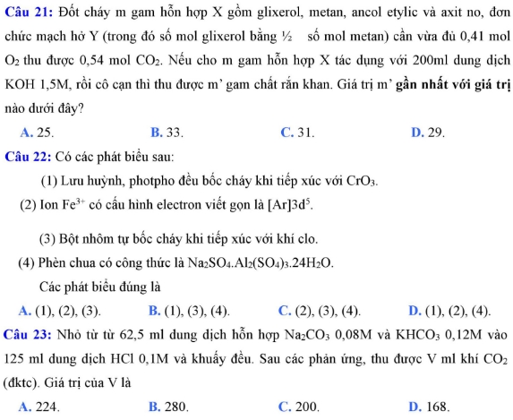 Câu 21 - 25:
