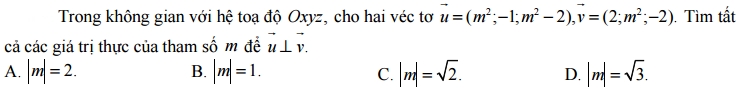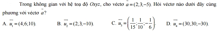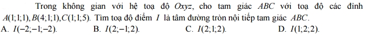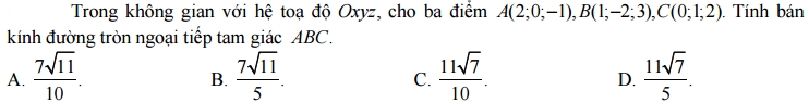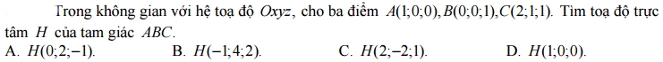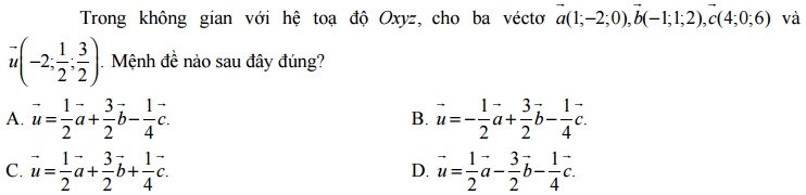 Đề thi trắc nghiệm Toán lớp 12: Hình tọa độ không gian Oxyz - Phần 1