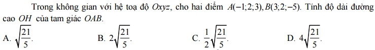Đề thi trắc nghiệm Toán lớp 12: Hình tọa độ không gian Oxyz