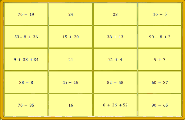 70 - 19 = ............; 53 - 8 + 36 = ................; 38 - 8 = ............; 70 - 35 = .............; 24 = ............; 16 + 5 = ...............; 60 - 37 = ...........; 21 + 4 = ............; 90 - 8 + 2 = ..............70 - 19 = 38 + 13; 53 - 8 + 36 = 9 + 38 + 34; 38 - 8 = 12 + 18; 70 - 35 = 15 + 20; 24 = 82 - 58; 21 = 16 + 5; 23 = 60 - 37; 21 + 4 = 90 - 65; 90 - 8 + 2 = 6 + 26 + 52||38 + 13; 9 + 38 + 34; 12 + 18; 15 + 20; 82 - 58; 21; 23; 90 - 65; 6 + 26 + 52