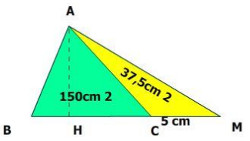 Cho tam giác ABC có diện tích là 150cm2. Biết nếu kéo dài cạnh đáy BC thêm 5cm thì diện tích tăng thêm 37,5cm2. Tính độ dài cạnh đáy BC.