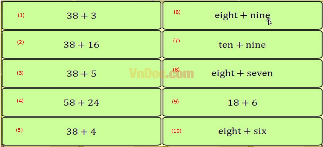Câu 4: 8 + 9 = 8 + 2 + ...