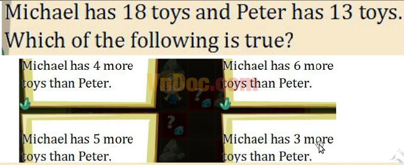 Câu 16: Jim has 28 toys and Bin has 23 toys. How many toys do Jim and Bin have altogether?