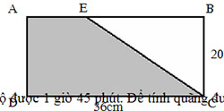 Diện tích phần tô đậm ở hình chữ nhật ABCD có AE = 1/3 AB là: