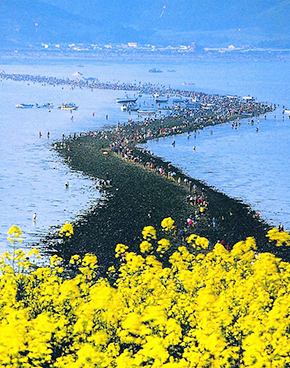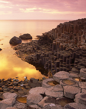 Bức ảnh vừa rồi chính là ghềnh đá dĩa tại tỉnh Phú Yên. Nơi đây tập hợp những phiến đá lăng trụ mặt dẹt, xếp chồng một cách vuông vức. Đó là hệ quả địa chất khi nham thạch nóng gặp phải dòng biển lạnh trong quá khứ. Trên thế giới, Giant‘s Causeway tại Ireland (ảnh bên) chính là một danh thắng với cảnh quan tương tự.