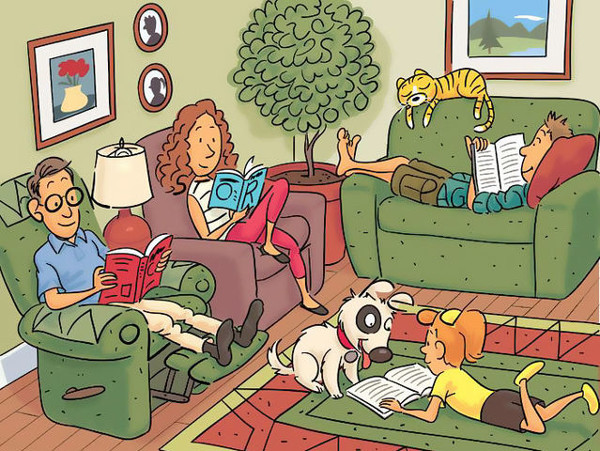 6 từ được ẩn giấu trong bức tranh trên là: ..........book, story, novel, words, page, read