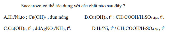 Các chất: glucozo, fomandehit, axetandehit, metylfomiat; đều có nhóm –CHO trong phân tử. Nhưng trong thực tế để tráng gương, người ta chỉ dùng một trong các chất trên, đó là chất nào?12