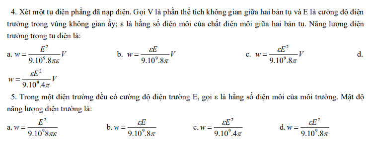 Trắc nghiệm môn Vật Lý lớp 11: Điện học - Điện trường (Phần 10)