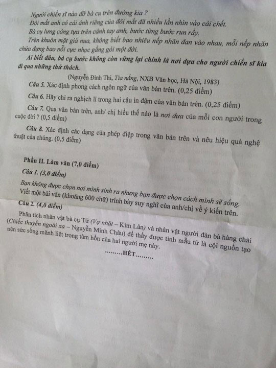 Thi thử THPT Quốc gia tại TP.HCM: Đề thi, đáp án môn Ngữ văn năm 2015