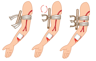 | Buộc chặt vết thương | Đưa người bị chảy máu đến cơ sở y tế gần nhất |