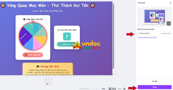 • Xuất bản thành website (đối với công cụ Canva) hoặc chia sẻ đường link canvas (đối với Germini)