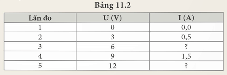 3. Hãy dự đoán giá trị của cường độ dòng điện trong các ô còn trống minh họa ở Bảng 11.2.