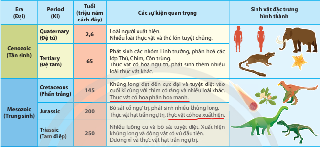 thực vật có hoa xuất hiện ở đại nào, kỷ nào
