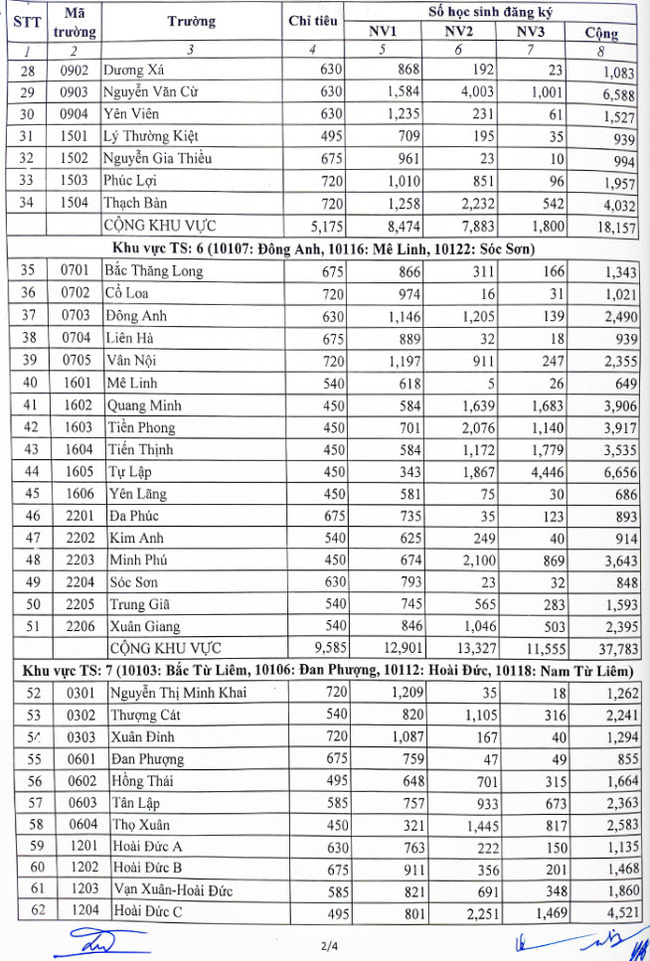 | THPT Cổ Loa | 720 | 974 | 16 | 31 | 1021 | 1,35 |