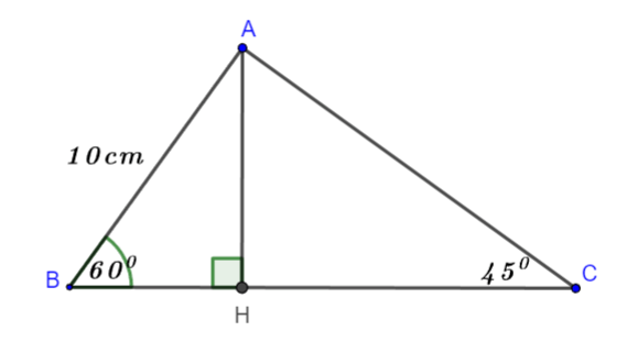 \(\sin B = \frac{AH}{AB} \Leftrightarrow \sin60^{0} = \frac{AH}{10}\)