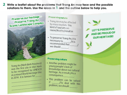 (Viết một tờ rơi về những vấn đề mà Tràng An có thể gặp phải và các giải pháp khả thi cho chúng. Sử dụng các ý tưởng trong 1 và phác thảo dưới đây để giúp bạn)
