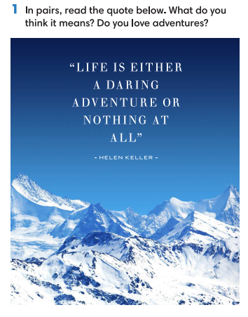 1. In pairs, read the quote below. What do you think it means? Do you love adventures?