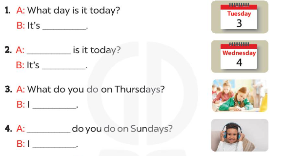 b - Bạn làm gì vào thứ Tư? - Tôi đi học.