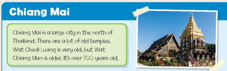 Chiang Mai là một thành phố lớn ở phía Bắc Thái Lan. Có rất nhiều ngôi chùa ở đây. Chùa Chedi Luang rất cổ kính, nhưng chùa Chuang Man còn lâu đời hơn. Nó đã hơn 700 năm tuổi.