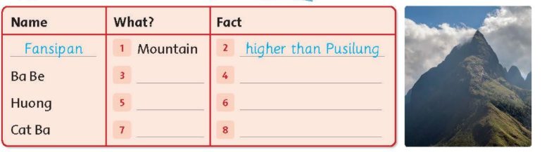1. Copy the table. Listen and complete. Sao chép bảng. Nghe và hoàn thành.