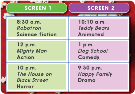 B: Chiếu lúc mấy giờ?