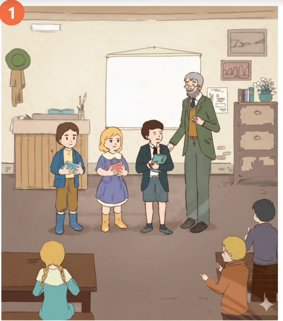 Câu 2: Kể từng đoạn của câu chuyện theo tranh: Cậu học sinh mới (theo Đức Hoài, Tiếng Việt 3, 1980)