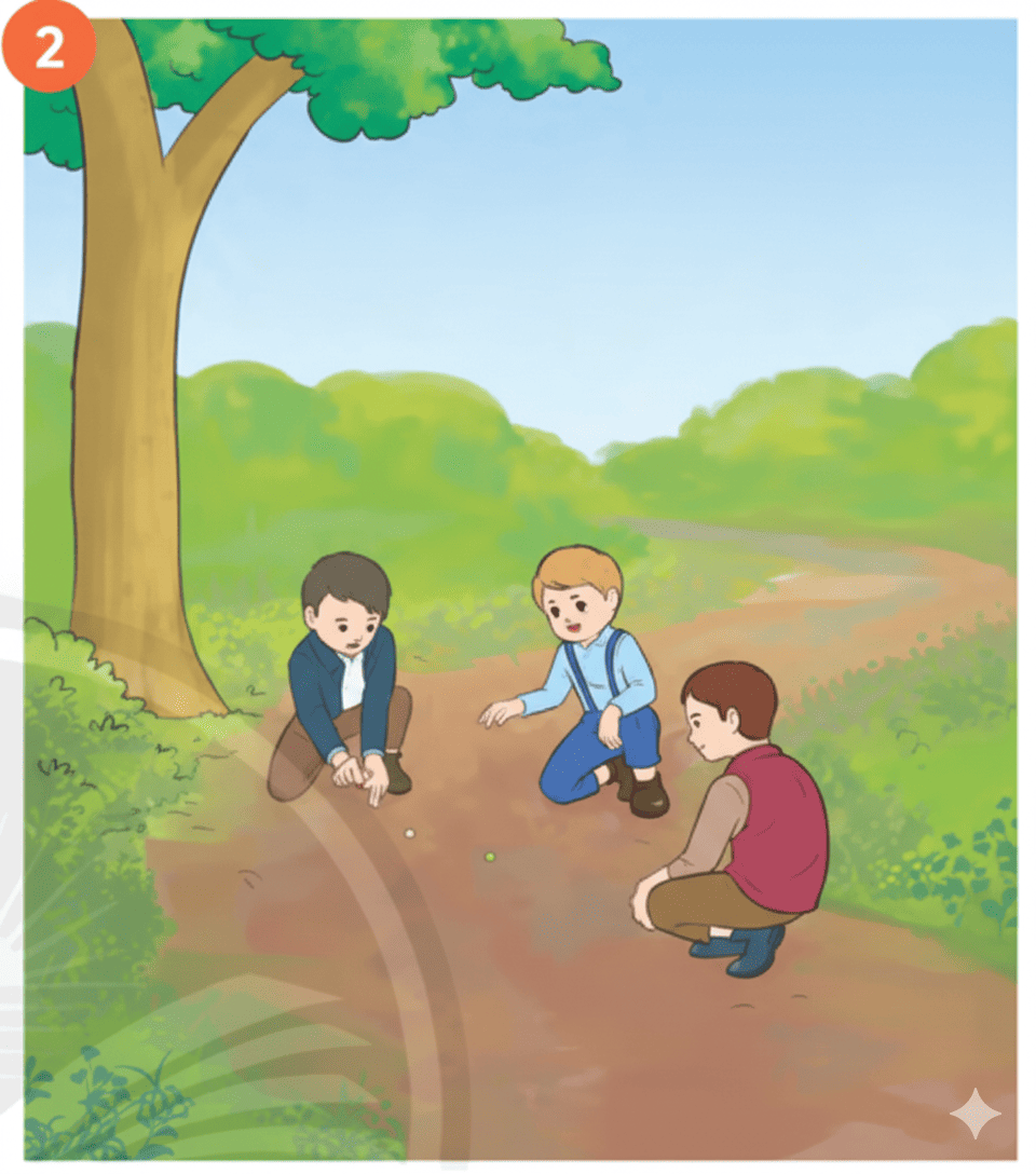 Đường từ nhà đến trường không xa lắm, có những chặng nghỉ và những trò chơi thú vị. Dưới gốc một cây to ở vệ đường, cỏ đã trụi đi vì những ván bị quyết liệt. Cái bãi gần đường vào thị trấn là nơi đã diễn ra những “pha" bóng chớp nhoáng, đầy hứng thú và say mê. Còn dưới chân cầu kia, chính là nơi Lu-i thường rủ Véc-xen, người bạn thân nhất của mình, đến đó câu cá. |