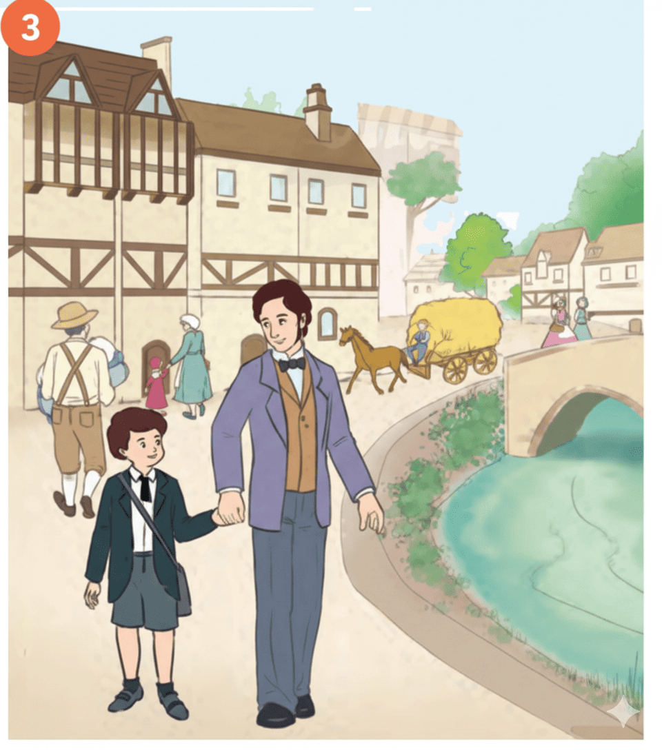 Ông Giô-dép dắt con trai đến gặp thầy giáo để xin học. Thầy Rơ-nê đã già, mái tóc ngả màu xám. Thầy hỏi: - Con tên là gì? - Thưa thầy, con là Lu-i Pa-xtơ ạ! - Cậu bé lễ phép. - Đã muốn đi học chưa hay còn thích chơi? - Thưa thầy, con thích đi học ạ! Thầy giáo gật gù: - Thế thì được! Thầy bằng lòng nhận cậu vào trường. |