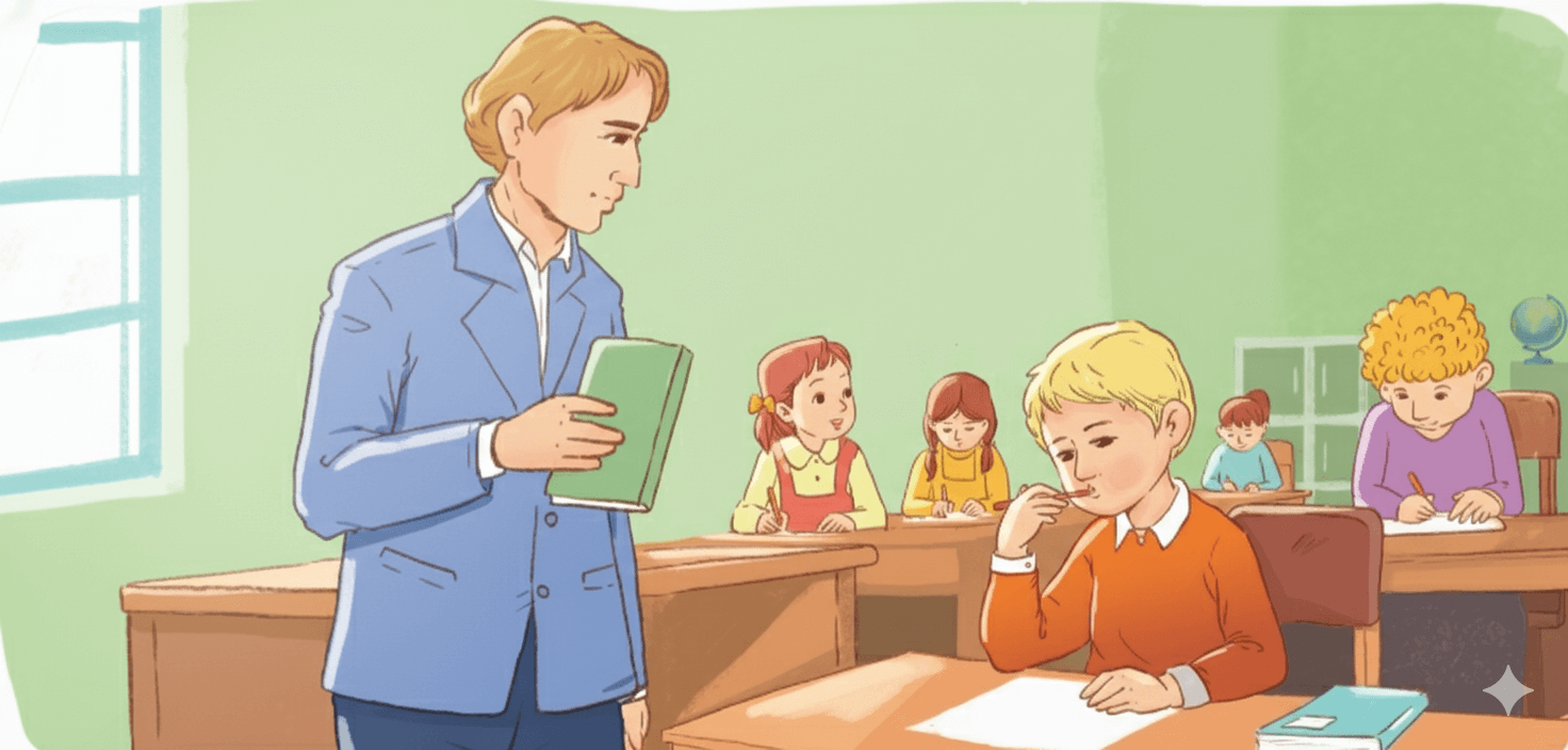 Một lần, vào giờ kiểm tra Toán cuối năm, trong khi các bạn khác mải miết làm bài thì không hiểu sao Huy-gô lại ngồi cắn bút từ đầu giờ. Thầy giáo cũng sốt ruột thay cho học trò của mình. Chỉ còn hai mươi phút nữa là phải nộp bài. Các bạn xung quanh đã có người làm xong, thế mà Huy-gô vẫn ngồi cắn bút, hai tai đỏ nhừ. Thầy giáo lại giơ đồng hồ ra xem và nhìn Huy-gô. Còn mười lăm phút nữa. Lúc này, Huy-gô bắt đầu đặt bút viết. Thầy giáo thở phào. Nhưng liệu có kịp không nhỉ? Ông lo lắng thay cho Huy-gô.