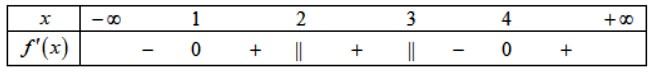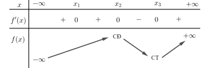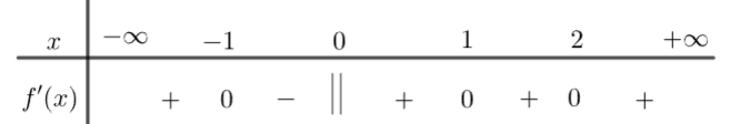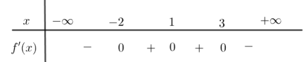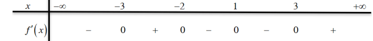 \(\mathbb{R}\) và có bảng biến thiên của đạo hàm như sau: