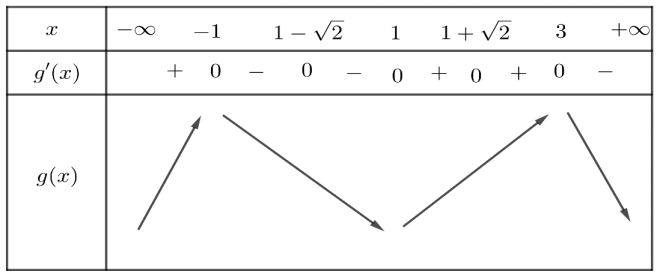 Từ (*) ta thấy g’(x) cũng đổi dấu khi x đi qua 2 điểm