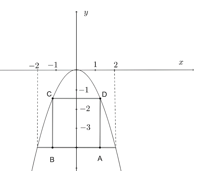 \(4\) mét. Người ta muốn gia cố cho cửa lò bằng một khung thép hình chữ nhật sao cho hai đỉnh dưới của khung thép chạm đất, hai đinh trên của khung thép chống vào mái hầm (hình vẽ minh họa). Tìm kích thước của khung thép sao cho diện tích của hình chữ nhật tạo bởi khung thép lớn nhất.
